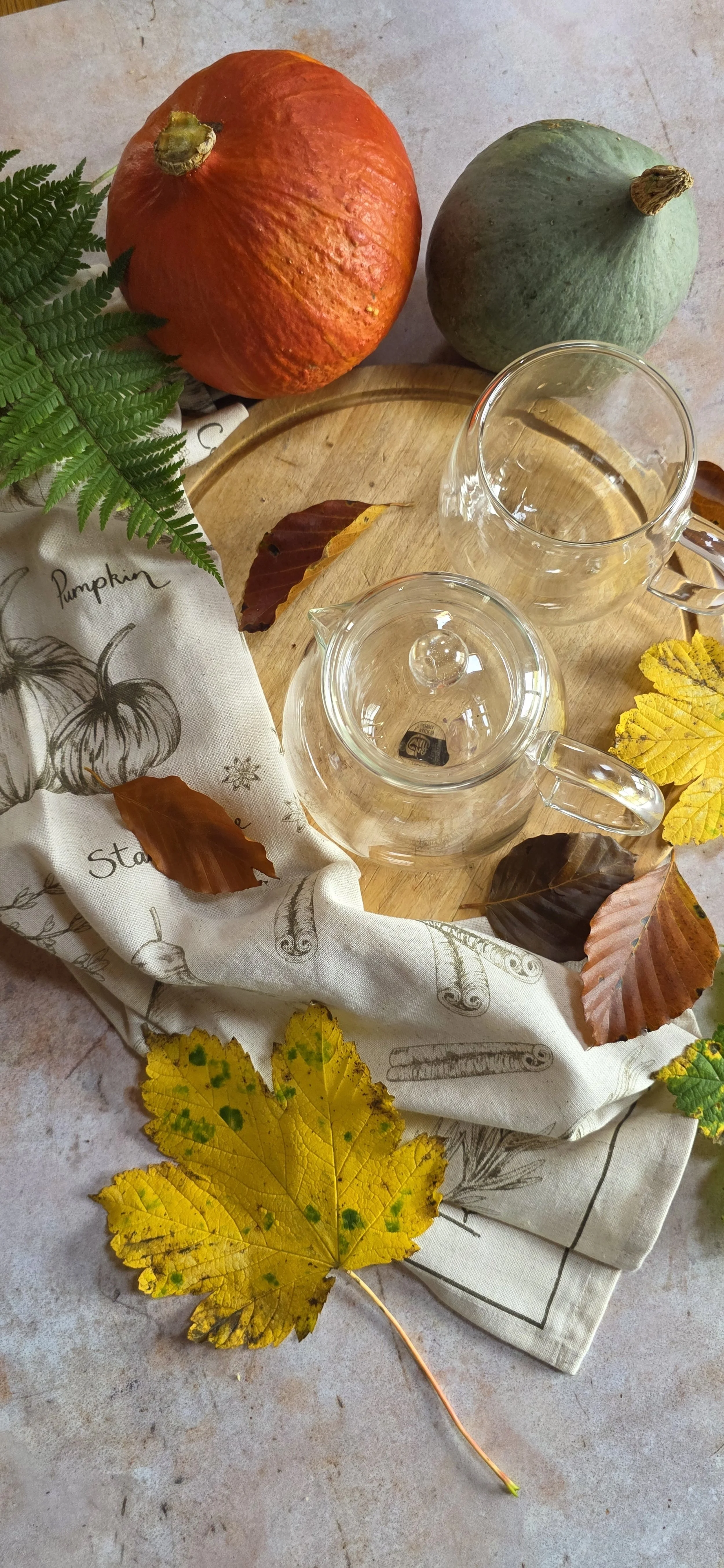 Ingredients: black tea (70 %), pumpkin cubes, ginger pieces, flavouring, sweet blackberry leaves, cloves, cinnamon pieces, freeze-dried pumpkin pieces, freeze-dried yoghurt granules.